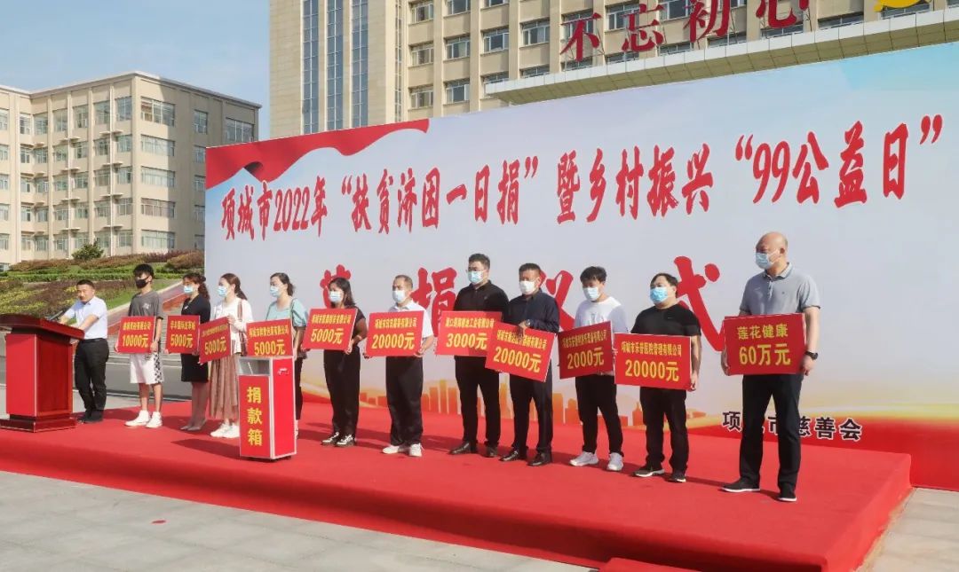 日前,项城市举行2022年“扶贫济困一日捐”暨乡村振兴“99公益日”现场募捐活动。项城市委书记赵丹、市长李飞等市领导参加活动并带头捐款。莲花健康党委书记、工会主席郭剑代表公司出席活动并向项城市慈善会捐赠60万元。