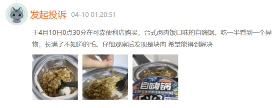 根据黑猫投诉显示,截至4月23日,搜索关键词“自嗨锅”共计有投诉量409条,其中近30天投诉量29条,平均一天一条,已完成9条,投诉回复量偏低。消费者投诉问题主要集中在自嗨锅食品质量问题、吃出异物、食物变质、虚假宣传、售后服务不到位等。