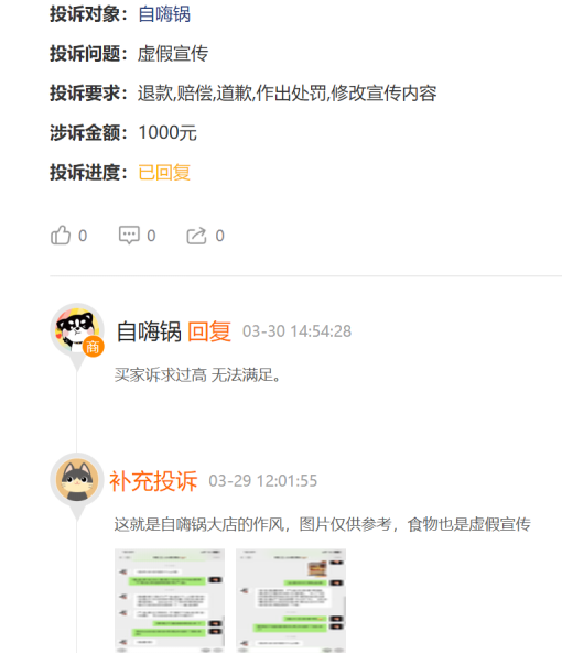 而据《港湾商业观察》查询发现,在不少消费者投诉过程中,经一定沟通后,自嗨锅客服仅回应称:买家诉求过高,无法满足。这显然无论是态度,还是结果,都很难令消费者信服。