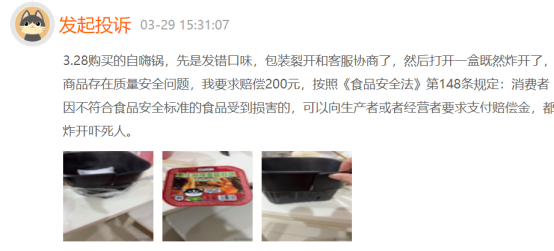 今年3月15日,一条名为“女子疑吃自嗨锅后食物中毒被送医”的热搜让外界对于自嗨锅存在的食品安全事件引起了深深的担忧。同时,市面上大部分速热食品中的自热包主要成分为生石灰,消费者在使用自嗨锅时也存在有被溅伤、烫伤的可能。