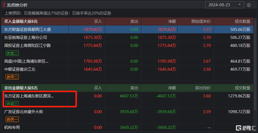在上周五还强势被几个游资又抬上了涨停板,本来意图是要博取周末消息的,没想到等来的是立案调查,但也有精准逃顶的高手——当日源深路(游资小鳄鱼)清仓式卖出4600万元。