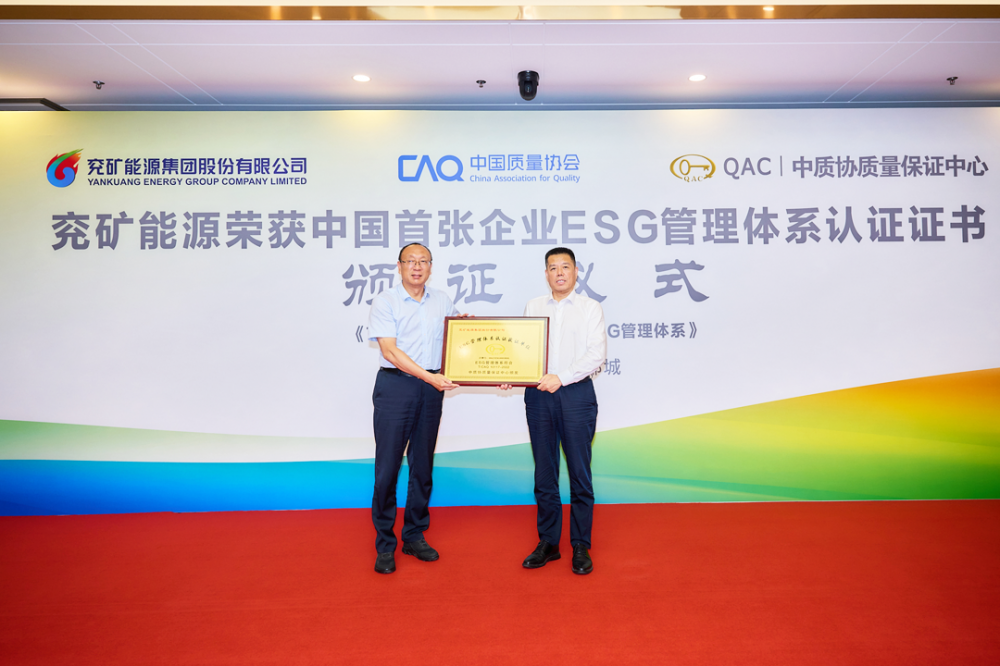 兖矿能源荣获中国首家企业ESG管理体系认证