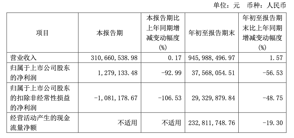 近日,泉阳泉发布2023年第三季度报告,前三季度实现营收约为9.46亿元,同比增长1.57%;实现归属于上市公司股东的净利润约为3756.8万元,同比下降56.53%。