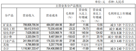 具体来看,泉阳泉的主要营收来自矿泉水产品。2023年,矿泉水产品实现营业收入约8亿元,同比增长11.66%,毛利率为39.47%,同比下滑1.01%。