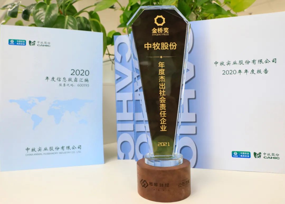11月11日,中牧股份获颁“金桥奖·年度杰出社会责任企业”称号。