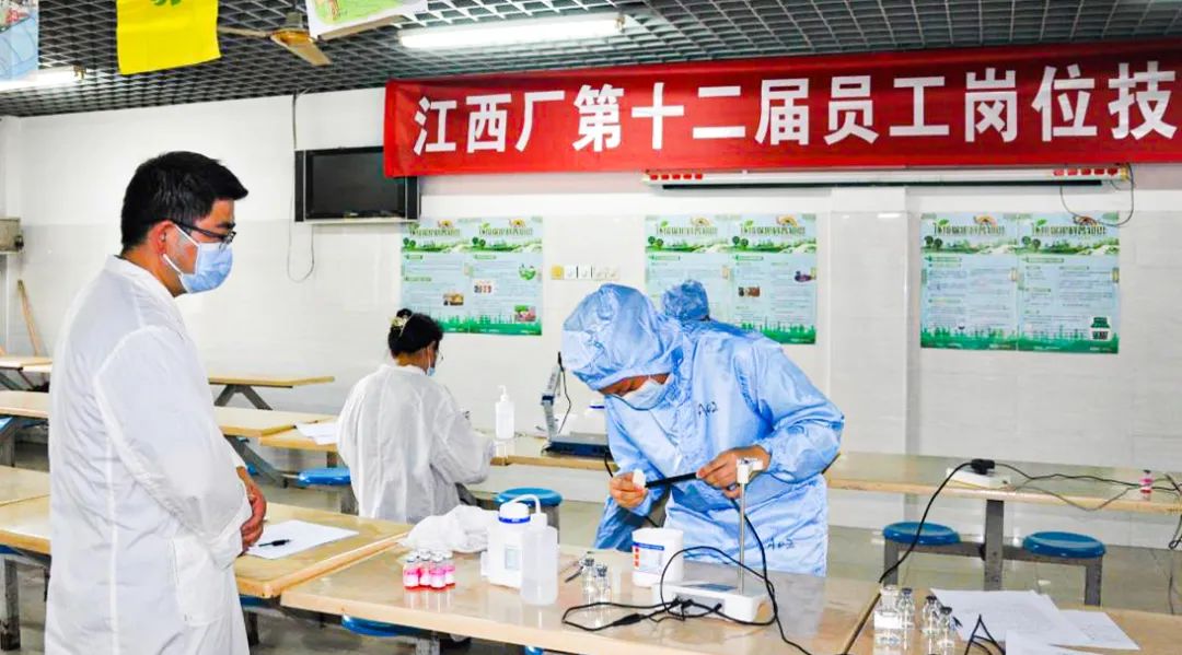 江西厂第十二届员工岗位技能竞赛,以“PH值测量操作、菌种传代操作”两个项目为中心展开;