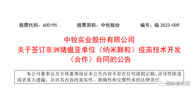 中牧股份于3月20日发布晚间公告称,为积极落实公司“十四五”战略规划,主动参与重大疫病的研究开发,巩固公司在兽用疫苗领域的市场地位。