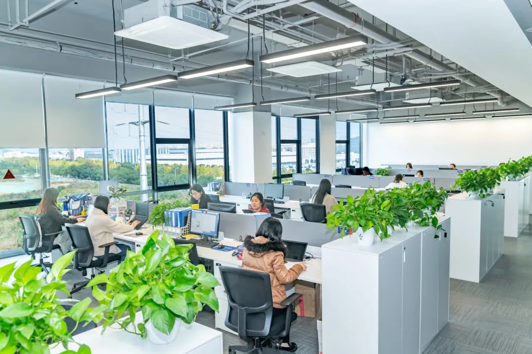办公区是完整开敞的大空间,大面积落地外窗,工作之余可以远眺放松身心,激发更多创造力。