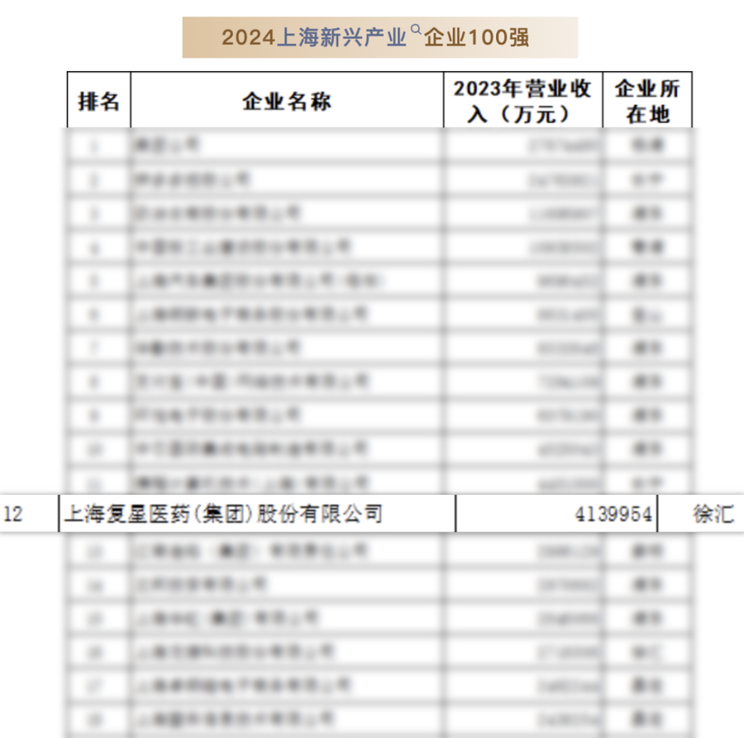 9月3日,备受市场关注的2024年上海百强企业榜正式发布,复星医药荣登上海新兴产业企业百强榜第12位。2023年,上海市新兴产业百强经营业绩继续保持高速增长的强劲势头,营业收入和净利润双双创出新高。这些企业的高速成长壮大,已经成为上海百强发展的重要力量。