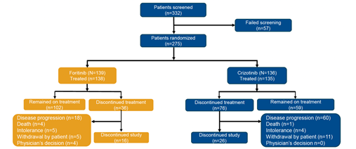 从2020年12月至2022年3月,该研究共招募275例患者,其中139例接受复瑞替尼