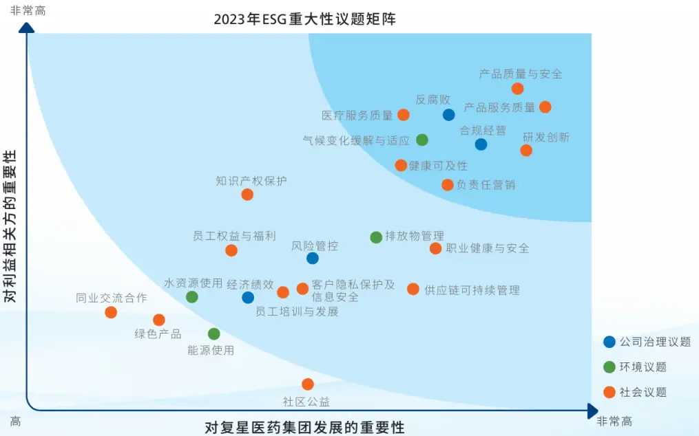 在复星医药2023年ESG实质性议题矩阵中,“合规经营”成为公司治理层面具有高度重要性的议题之一。
