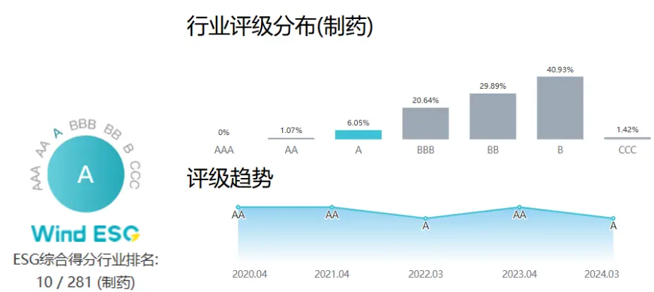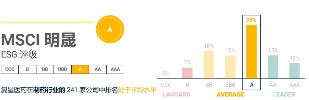国际评价上,以MSCI(明晟)评级为例,复星医药保持在A评级,在获得MSCI评级的全球制药行业241家公司排名中等,相较于国内同行,仍展现出一定优势。