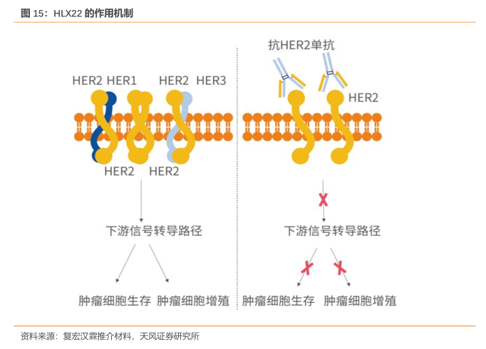 HLX22:具有改变目前一线胃癌SOC的潜力。HLX22靶向Her2 的domainIV的不同表位。PDx 数据显示,与同为靶向Her2domainIV的曲妥珠单抗的联合疗法在胃癌适应症上比曲帕疗法更具优势。作为HER2抗体,其疗效不受PD-L1表达水平影响,也未观察到同适应症其它试验中出现的严重腹泻情况。公司推介材料显示,HLX22基于现阶段临床II期数据,在转移性胃癌和胃食管交界癌的一线治疗中与现行标准治疗相比,将为患者带来明显获益,具有改变目前标准治疗方式的潜力。