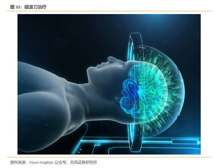 “磁波刀”(磁共振引导聚焦超声脑部治疗系统)由Insightec公司研发,已获得欧洲CE认证、美国FDA批准,并于2021年顺利通过中国国家药品监督管理局(NMPA)的批准,是目前用于临床治疗药物难治性特发性震颤和以震颤为主型的帕金森病的无创手术方案。该治疗系统将聚焦超声和磁共振成像(MRI)相融合,通过MRI精准定位治疗靶点,使用高强度聚焦超声消融病灶达到治疗目的。