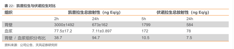 与伏诺拉生相比,凯普拉生水溶性增强,胃组织分布更加集中改变脂溶性,增强水溶性,进而改变组织分布,提高靶器官胃内分布,其胃壁/血浆浓度比高。