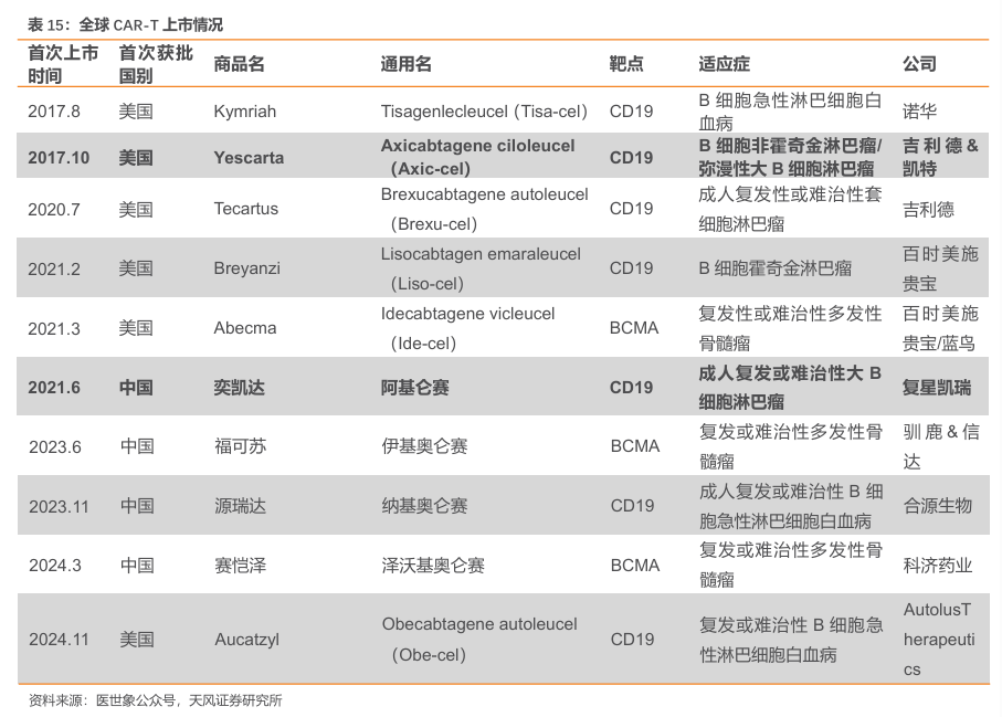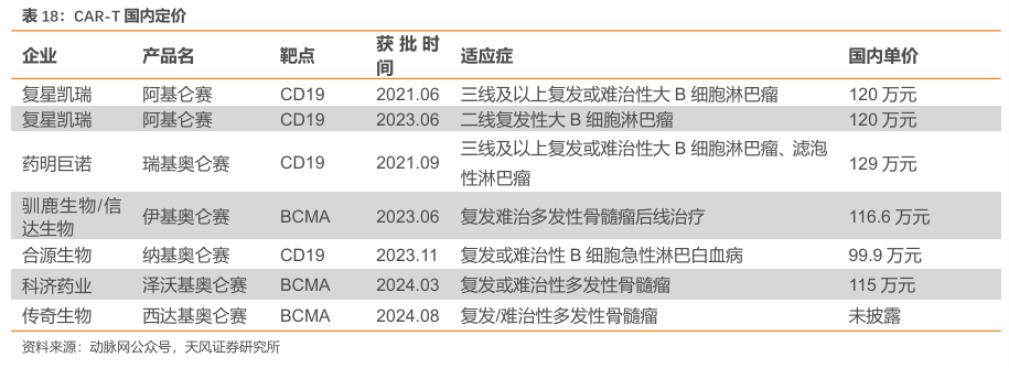 2.4.阿基仑赛注射液:首个国内上市的CAR-T疗法,按疗效付费/医保丙类目录有望带动放量