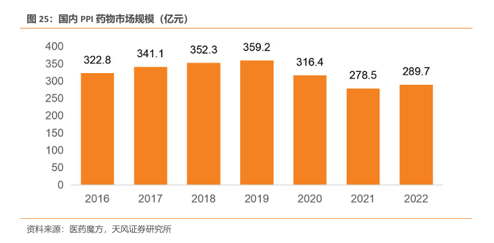 国内PPI经历集采后仍有超200亿市场规模。1978 年,第一款具有强效抑酸作用的质子泵抑制剂(PPIs)奥美拉唑问世,随后各种其他 PPIs 相继获批上市。自从2020年第三批药品集采开始, PPI市场销售额在2020年首次出现负增长。到2022年,PPI市场规模重新呈现增长趋势。医药魔方数据显示,2022年,国内PPI的市场规模达289.7亿元。