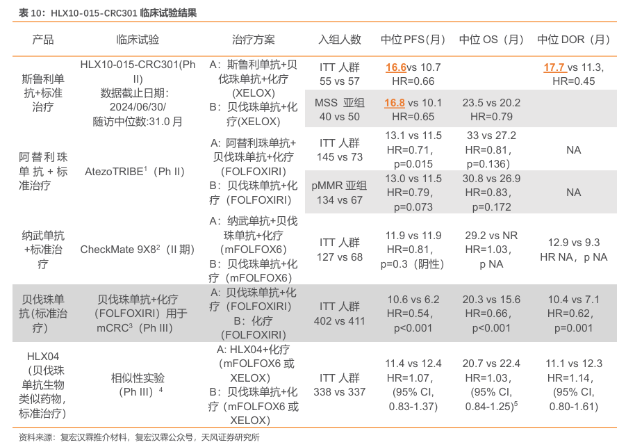 斯鲁利单抗联合疗法领跑1LmCRC治疗。公司于2025年ASCOGI公布其PD-1中位随访时间为31.0个月的Ⅱ/Ⅲ期延长数据。数据显示:共有114名未接受过系统治疗的mCRC患者以1:1的比例随机分配至斯鲁利单抗治疗组(n=57)或安慰剂治疗组(n=57)。两组患者分别接受斯鲁利单抗(300mg)联合贝伐珠单抗(7.5mg/kg)和XELOX(A组)或安慰剂联合贝伐珠单抗和XELOX(B组),每3周一次。