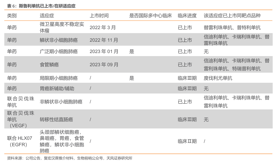 2.1.2.差异化适应症布局+显著临床获益,斯鲁利单抗商业化取得积极进展