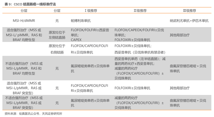 根据《CSCO结直肠癌诊疗指南2023》,目前我国结直肠癌标准疗法基本上以贝伐珠单抗、西妥昔单抗及化疗为主。帕博利珠单抗、纳武利尤单抗两款PD-1仅批准用于MSI-H/dMMR患者,存在较明显的未满足临床需求。