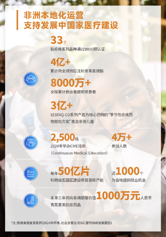 复星医药始终将创新作为企业最重要的社会责任,围绕未被满足的临床需求,通过自主研发、许可引进等多元创新模式,持续提升药品可及性与可负担性,推动全球健康公平可及。同时,复星医药长期致力于提升发展中国家医疗水平,尤其在非洲地区,通过药品供应、技术培训和本地化生产等多措并举,支持发展中国家医疗建设,助力公共卫生能力建设。