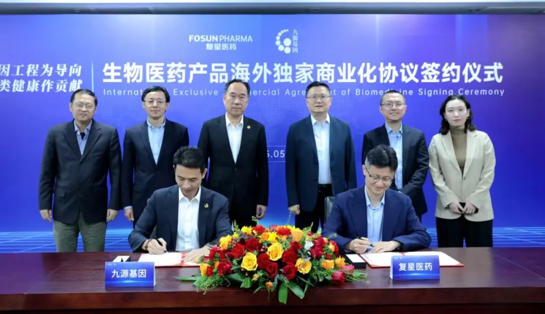 (2025年5月28日,中国上海)近日,上海复星医药(集团)股份有限公司(“复星医药”;股票代码:600196.SH;02196.HK)与杭州九源基因生物药股份有限公司(“九源基因”;股票代码:02566.HK)就多款生物药及创新药械产品的海外独家商业化权益合作在杭州举办签约仪式。