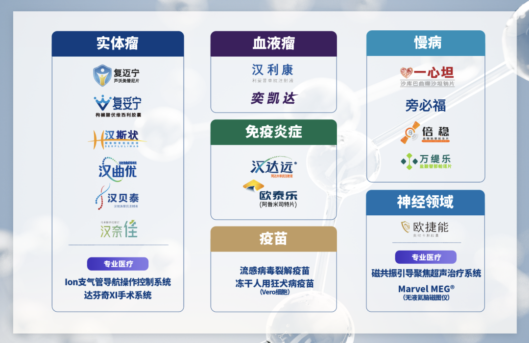 在实体瘤领域,复星医药已在肺癌、乳腺癌等领域形成以斯鲁利单抗注射液、注射用曲妥珠单抗为代表的创新药品矩阵。报告期内,拥有自主知识产权的创新型小分子CDK4/6抑制剂复妥宁?(枸橼酸伏维西利胶囊)的获批进一步丰富乳腺癌治疗产品组合;首个自研小分子创新药复迈宁?(芦沃美替尼片)双适应症获批,填补罕见病肿瘤治疗空白;斯鲁利单抗注射液(抗PD-1单抗)于欧盟、英国、印度等国家/地区获批。在持续推进HLX22(重组人源化抗HER2单克隆抗体注射液)与注射用HLX43(靶向PD-L1抗体偶联药物)国际多中心临床试验的同时,先后引进HLX701(SIRPα-Fc融合蛋白)、FXB0871(PD-1靶向型IL-2融合蛋白),以进一步充实创新药品管线。
