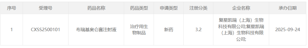 9 月 24 日,CDE 官网显示,复星医药旗下复星凯瑞(曾用名复星凯特)的布瑞基奥仑赛注射液申报上市。根据该药的临床试验进度,Insight 数据库推测本次申报的适应症可能为:复发/难治性前体 B 细胞急性淋巴细胞白血病成人患者。