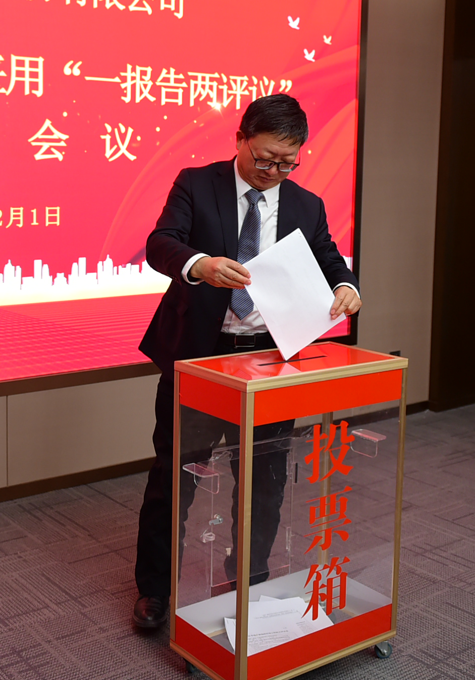 最后,对各党支部书记抓基层党建工作和公司2022年度干部选拔任用工作“一报告两评议”工作进行民主测评。