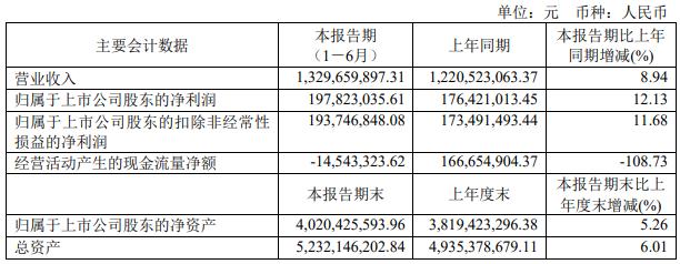 8月27日晚间,伊力特发布2024年半年报显示,报告期内,公司实现营收13.3亿元,同比增长8.94%,同比增加1.09亿元;实现净利润1.98亿元,同比增长12.13%,同比增加0.22亿元。