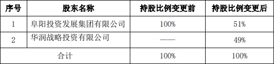 本次股权转让完成后,金种子集团第一大股东为阜阳投资发展集团有限公司,持股比例为51%,第二大股东为华润战略投资有限公司,持股比例为49%。