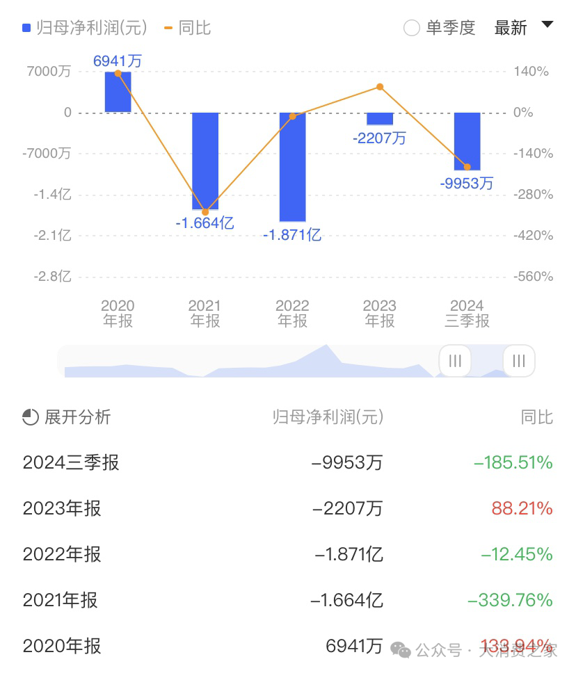 然而,金种子酒的业绩却持续低迷。具体来看,金种子酒业前三季度的营收为8.06亿元,同比减少24.90%;而归母净利润则由去年同期的盈利转为今年的亏损,亏损额超1亿元。第三季度单季度来看,营业收入1.39亿元,与去年同期相比下降了54.41%;归母净利润则为-1.11亿元,同比降幅高达3843.21%。