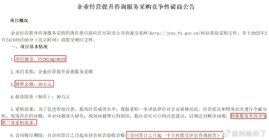 掏出30万,大股东准备公开招一家咨询机构来对上市公司“近三年来”的情况进行调研评估,以期通过把脉问诊,来提升上市酒企的“竞争力和盈利能力”。