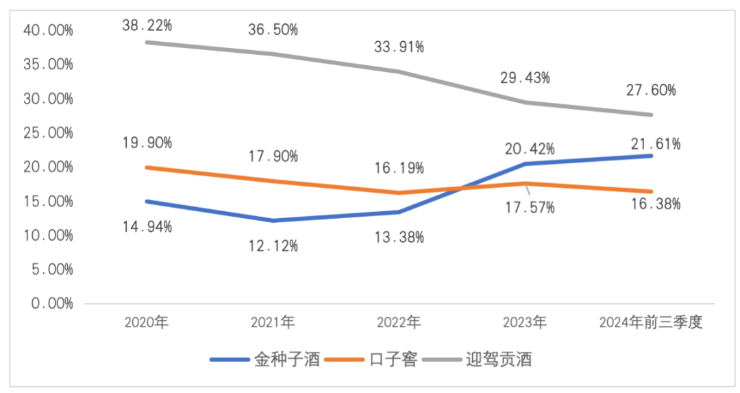 更令人心惊的是,在2024年4月份砍掉收入贡献大头的低毛利率医药板块之后,金种子酒前三季度38.67%的销售毛利率较其他三家平均75%毛利率水平仍然存在着断崖式的差距。