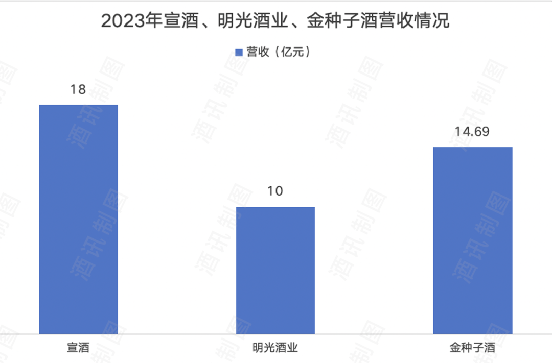 资料显示,2023年,宣酒实现营收18亿元,同比增长23%,明光酒业营收突破10个亿。同年,金种子酒实现营业收入14.69亿元。