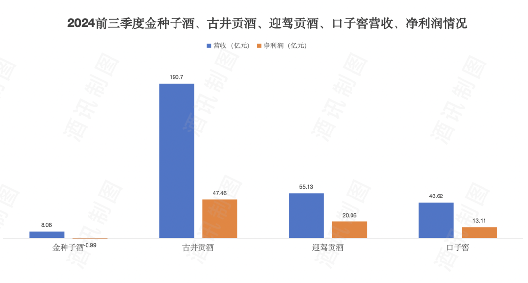 对比来看,去年前三季度,古井贡酒实现营收190.7亿,同比增长19.53%;归母净利润47.46亿,同比增长24.49%。迎驾贡酒实现营收55.13亿元,同比增长13.81%;归母净利润20.06亿元,同比增长20.19%。口子窖实现营收43.62亿元,同比下降1.89%;实现归母净利润13.11亿元,同比下降2.81%。