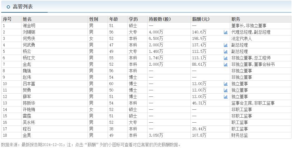 何秀侠从金种子酒年年都拿不菲的薪酬,似乎印证上述话语。2022年至2024年,何秀侠从金种子酒获得薪酬分别为94.6万元、304.96万元和198.85万元,三年总计约598万元。此外,2024年金种子酒还有多名高管年薪超过百万。