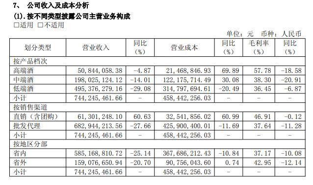 作为金种子酒主要收入来源的白酒业务表现糟糕。2024年,以金种子馥合香为代表的高端酒,毛利率57.78%,但营收仅为5084万元,同比下滑4.87%;而中端酒和低端酒的毛利率分别为38.3%和36.45%,营收分别为1.98亿元和4.95亿元,同比分别下滑14.01%、29.08%。