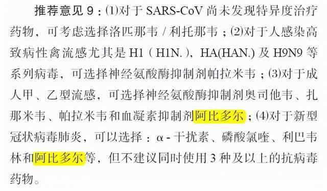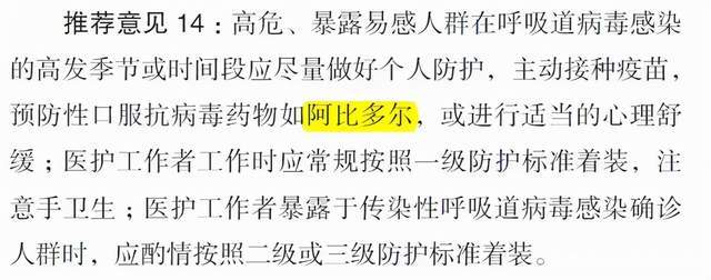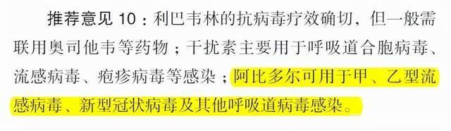 专家推荐意见提到,阿比多尔可用于甲、乙型流感病毒、新型冠状病毒及其他呼吸道病毒感染。