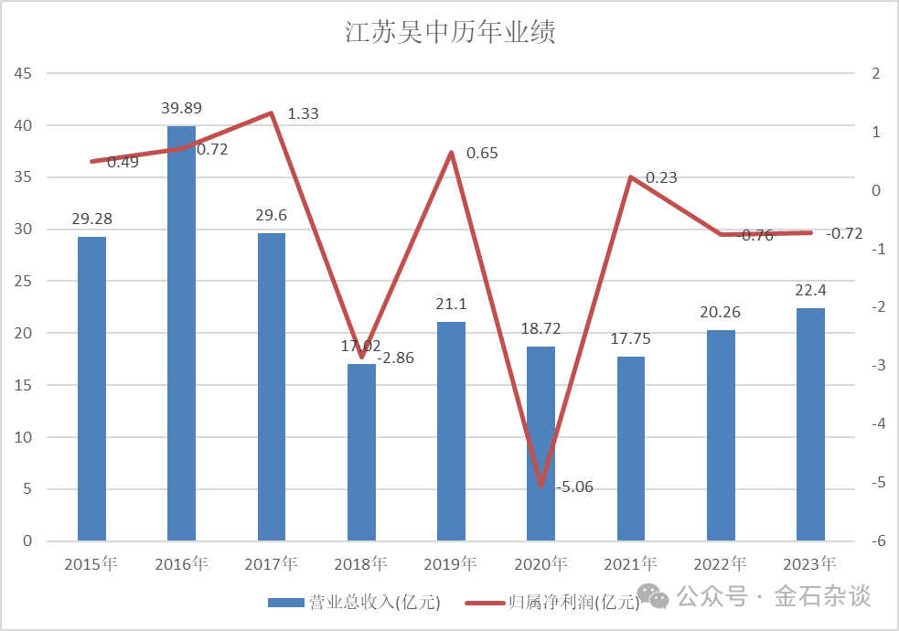 根据公开资料,江苏吴中994年在A股上市,从事行业五花八门,上市之初,江苏吴中的主业为服装,医药业务只占少部分。随后,该公司先后布局过房地产、医药、贵金属加工、化工等业务。