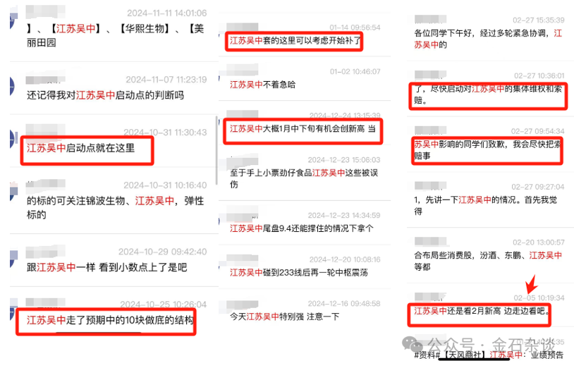 根据粉丝投诉的聊天截图,知名投顾大V在去年10月下旬开始推票,10月31日高呼“启动点就在这里”,12月24日强调“大概1月下旬有机会创新高”,1月14日建议大家补仓,2月5日还在看新高,但是到了2月27日开始致歉并表示“尽快启动对江苏吴中的集体维权和索赔”。
