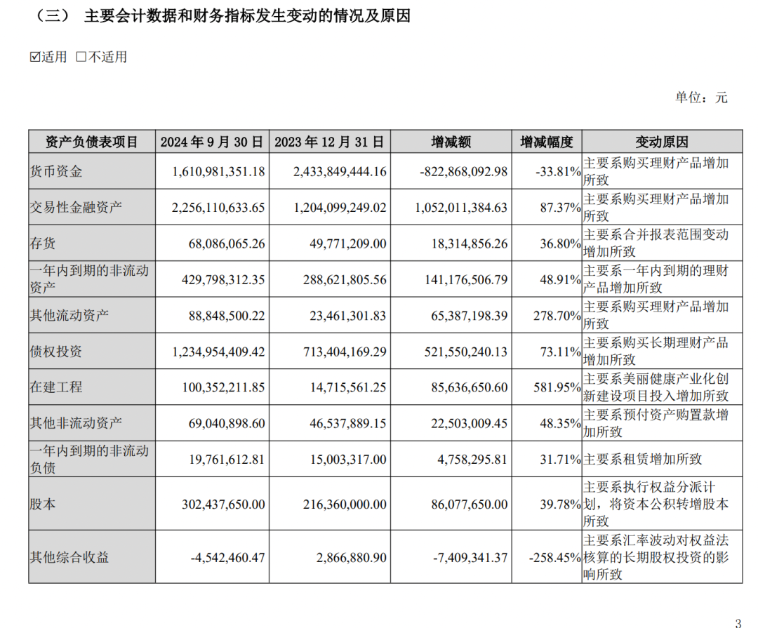 目前公司账上现金流也较为充足,在一定程度上能够为公司管线扩张提供保障。截至2024年前三季度,爱美客的资产负债率为4.34%,账上货币资金为16.11亿元,交易性金融资产为22.56亿元。