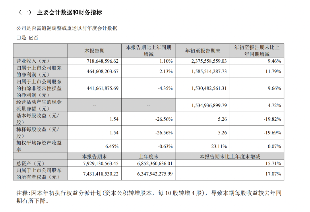 对比来看,自爱美客上市以来,公司历年的营收增速均在25%以上,归母净利润增速均在30%以上。但2024年前三季度,公司实现营收23.76亿元,仅同比增长9.46%,归母净利润为15.86亿元,仅同比增长11.79%。