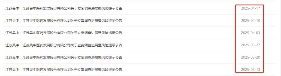 每周一篇的风险提示公告,江苏吴中已经连续发了6周了。