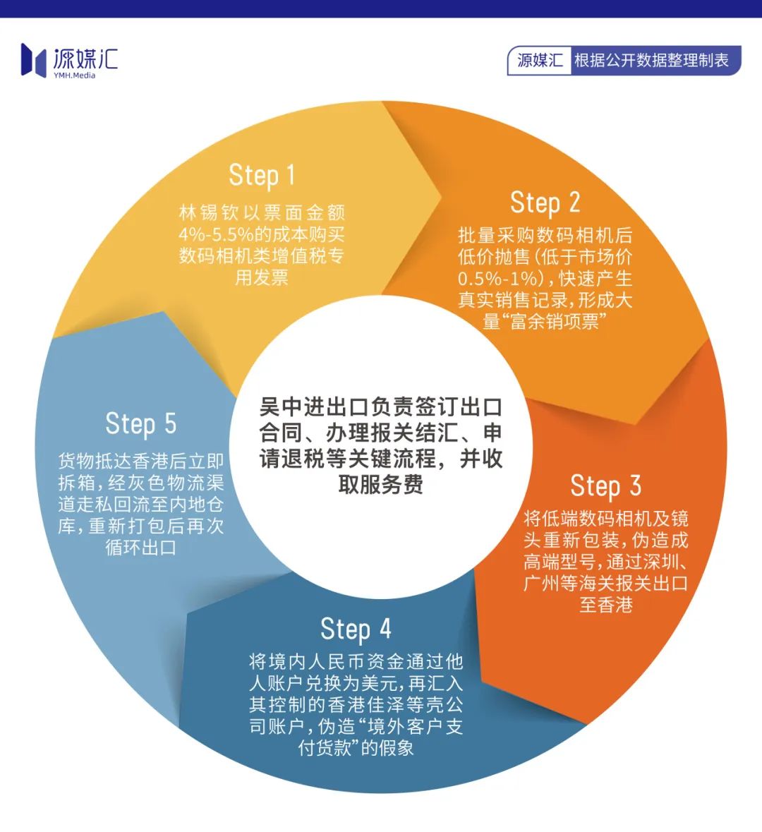 吴中进出口将林锡钦团伙的代理出口业务伪装成自营出口,利用其上市公司子公司的资质,为虚假交易提供合规背书。具体操作中,吴中进出口负责签订出口合同、办理报关结汇、申请退税等关键流程,每出口1美元收取0.1元服务费,成为资金和票据流转的核心枢纽。