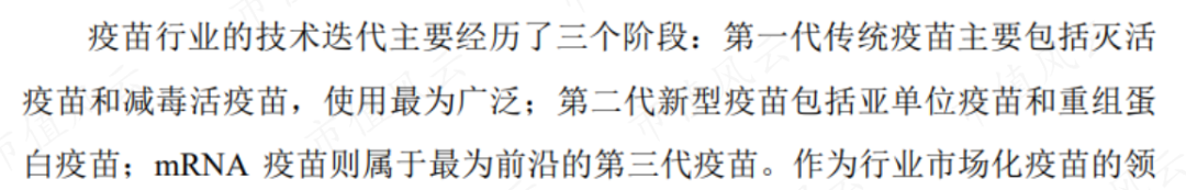 疫苗行业在技术上经历了三个阶段,mRNA是最前沿的第三代,和第一代之间的技术难度恐怕差了不止1-2个数量级。