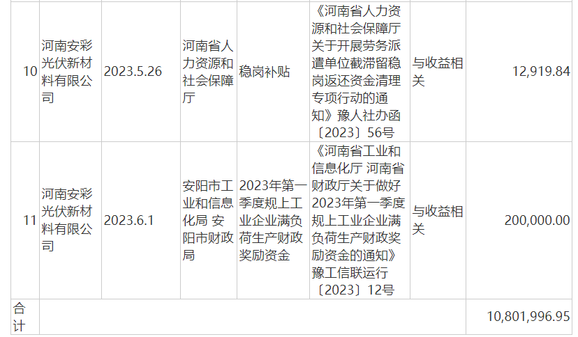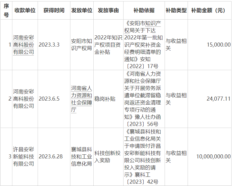 6月30日,安彩高科公告,近日,公司及子公司累计收到与政府补助共计1080.20万元(未经审计),占公司2022年度净利润的13.94%。