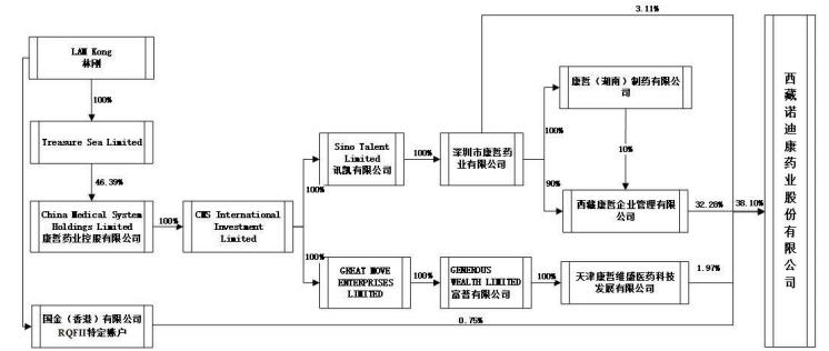 2014年原第二大股东新凤凰城所持20.44%股份转让给康哲医药,康哲系合计持股26.61%成为控股股东。目前康哲系持股38.11%拥有更强控制力。