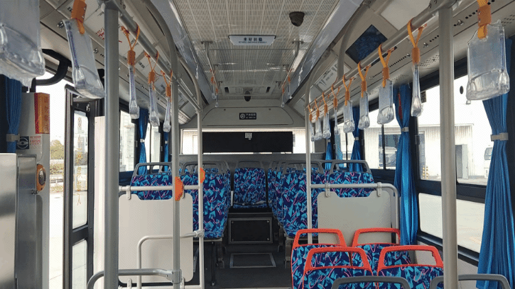 车内,为了更好地提升当地乘客的乘车体验感,采用一级踏步,距地高度36cm以下,方便老人、小孩上下车;配置软包座椅,进一步提升乘坐舒适度。
