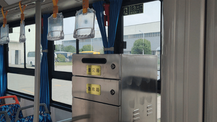 车内还配备贴心装置——增设意见箱和急救箱,具备USB充电口,下车门采用外摆气动高铁门,更加快捷安全。